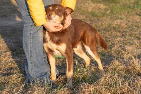 Czekoladek to bardzo przyjazny i wesoły chłopak. Lubi towarzystwo merdających kompanów (mruczące gania, więc odradzamy do domu z kotami). Psiak uwielbia towarzystwo dzieci. Gdy trafił do Przytuliska miał zapalenie spojówki (widać na niektórych zdjęciach), ale kryzys został już zażegnany i z oczkiem nie ma już żadnych problemów. Psiak jest wyjątkowej urody, złośliwi twierdzą, że nienachalnej. Wszelkie niedociągnięcia w kwestiach zewnętrznych nadrabia po stokroć cudownym charakterem. Psiak jest nieduży (do kolana) i jak widać na foteczkach ma nieziemskie umaszczenie.