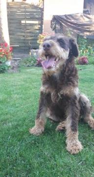 Piękna młodziutka sunia w typie teriera niemieckiego. Pilna adopcja!
