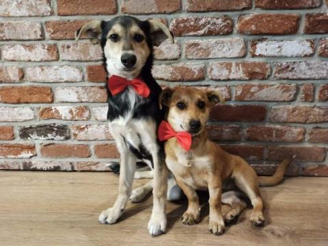 PSZCZÓŁKA I MUSZKA to cudowne siostry, w wieku około 6 miesięcy, będą średniej wielkości psiakami. Pszczółka waży 6 kg i będzie mniejsza od swojej siostry. Muszka waży 10 kg. Są odrobaczone odpchlone, zaszczepione, zaczipowane i wkrótce będą wykastrowane. Jak każdy szczeniak lubią zabawę i rozrabianie, oraz przytulanie. Uwielbiają zabawy z piłką i innymi zwierzętami. Nie opuszczają człowieka na krok.