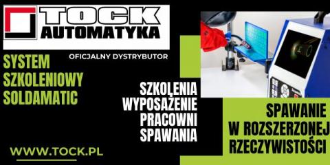 Firma TOCK-AUTOMATYKA jest oficjalnym dystrybutorem najnowocześniejszego systemu szkoleniowego SOLDAMATIC umożliwiającego spawanie z wykorzystaniem rozszerzonej rzeczywistości AR (Augmented Reality). System szkoleniowy spawania SOLDAMATIC pozwala na wyposażenie pracowni CNC w narzędzia pozwalające w bezpieczny sposób rozpocząć naukę spawania bez ryzyka poparzenia, zużycia materiałów eksploatacyjnych, przystosowania pomieszczeń specjalnie do celów szkolenia. Symulator spawania SOLDAMATIC posiada panel sterowania oraz możliwości techniczne pozwalające zarówno na rozpoczęcie nauki spawania jak i poprawę umiejętności spawalniczych poprzez wyćwiczenie pamięci mięśniowej w pracy z uchwytem spawalniczym, w przyłbicy ochronnej i rękawicach. Spawanie z wykorzystaniem rozszerzonej rzeczywistości przy użyciu symulatora SOLDAMATIC pozwala zaplanować dowolne zadania z zakresu spawania z możliwością wielokrotnego powtarzania ćwiczenia, zmiany użytych materiałów spawalniczych oraz metod obróbki metalu tj. MIG-MAG, TIG, elektrodą otuloną. Szkolenie spawacza w pracowni CNC wyposażonej w symulator spawania w rozszerzonej rzeczywistości SOLDAMATIC pozwala przełamać opór przed użyciem tradycyjnej spawarki, pozwala wykorzystać dowolną przestrzeń pod stanowiska spawania bez konieczności instalacji odciągów spalin, zabezpieczeń przeciwpożarowych, zakupu odzieży ochronnej, gazów technicznych, materiałów eksploatacyjnych. Zastosowanie nowoczesnych technologii oraz nowoczesnych rozwiązań szkoleniowych tj. SOLDAMATIC w procesie edukacyjnym dla spawaczy ogranicza koszty działalności szkoleniowej w porównaniu do tradycyjnego procesu szkoleniowego, stwarza warunki do poprawy umiejętności spawania w bezpiecznym i kontrolowanym środowisku oraz ocenę umiejętności spawalniczych po każdym etapie szkolenia.
