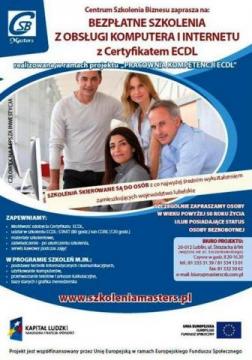 Masters Centrum Szkolenia Biznesu zaprasza na BEZPŁATNE SZKOLENIA KOMPUTEROWE w ramach projektu „Pracownia kompetencji ECDL” współfinansowanego przez Unię Europejską w ramach EFS.