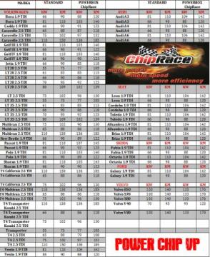 POWER CHIP PD - Chip analogowy lub cyfrowy przeznaczony do samochodów na pompowtryskach AUDI, VW, SEAT, SKODA, FORD, JEEP, MITSUBISHI (szczegółowe informacje w tabeli poniżej)