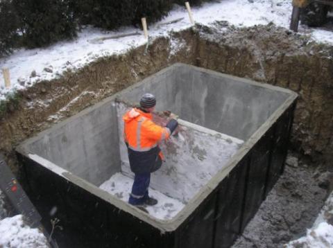 Szamba wykonane z betonu klasy B-25, B-30 – monolityczne czyli ściany zbiornika odlewane są razem z dnem, czas montażu od 20 do 40 minut.