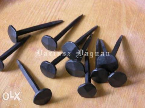 Kute na indywidualne zamówienie gwoździe - różne rozmiary, dostosowane do potrzeby klienta. Wspaniałe i oryginalne wykończenie np. mebli, skrzyń. Galeria: www.warsztatkowalski.pl
