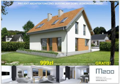 PROJEKT ARCHITEKTONICZNO- BUDOWLANY DOMU MIESZKALNEGO JEDNORODZINNEGO, PARTEROWY Z PODDASZEM UŻYTKOWYM, POWIERZCHNIA OKOŁO 120m2+ PROJEKT ARCHITEKTONICZNY ARANŻACJI WNĘTRZA GRATIS!www.M200.pl