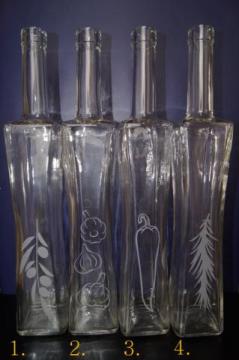 Piaskowanie na butelkach nieznacznie różni się ze względu na ręczne wykonanie.