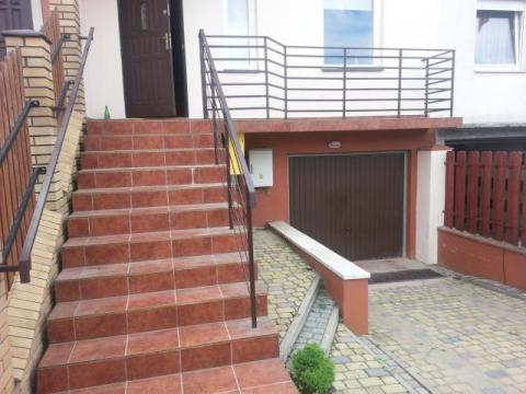 Dom usytuowany na działce o powierzchni 240 m2. Powierzchnia domu: 230 m2. Dom częściowo podpiwniczony: garaż na dwa auta w bryle budynku, pomieszczenie gospodarcze. Wysoki parter 66 m2: duży salon z wyjściem na taras i do ogrodu, kuchnia częściowo otwarta na salon, duży przedpokój, wc. I piętro 66 m2: 3 sypialnie, dwie z wyjściem na balkon, łazienka z wanną.Poddasze: powierzchnia open space. Na podłodze: deska barlinecka jesion,dąb.